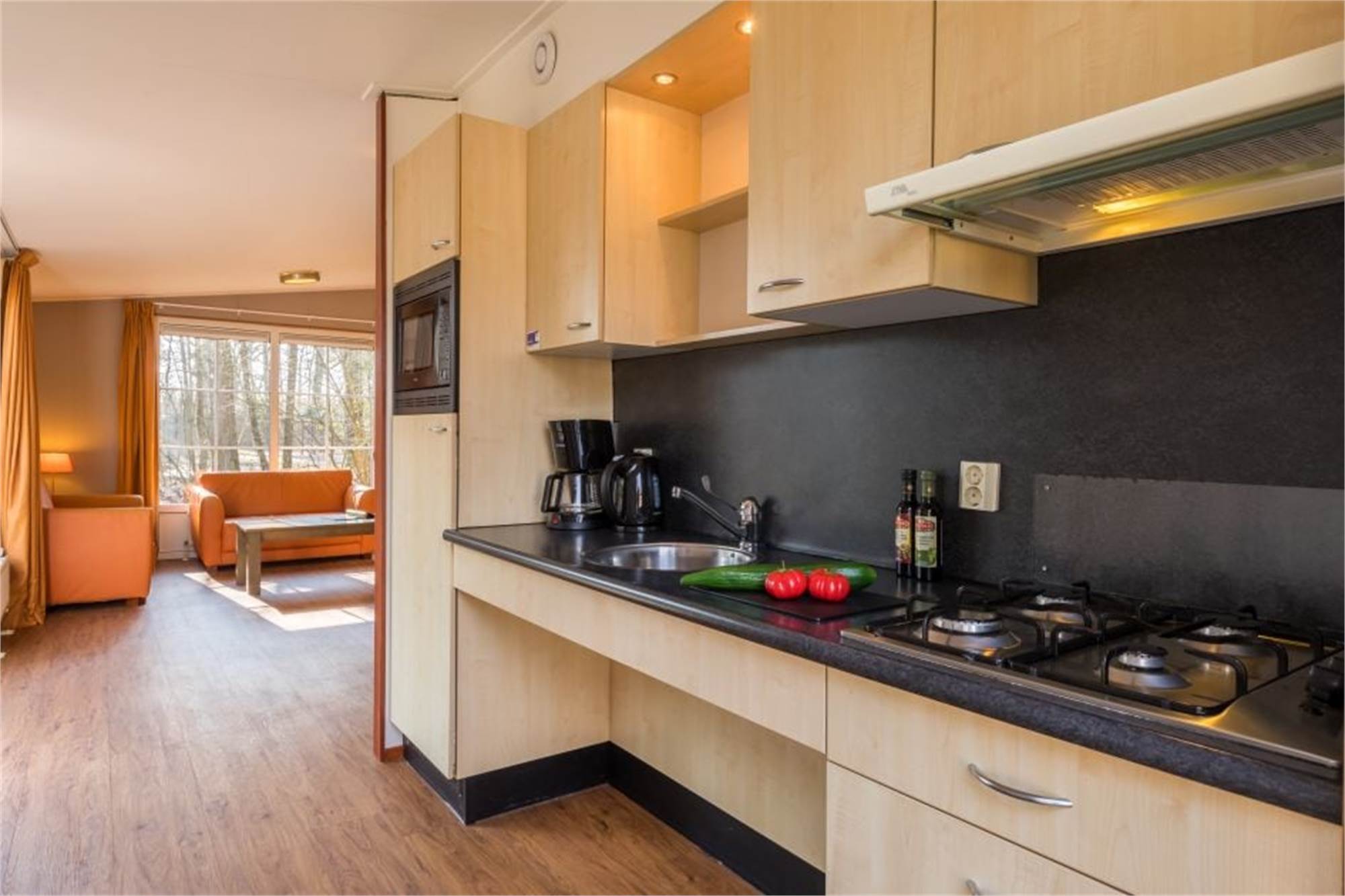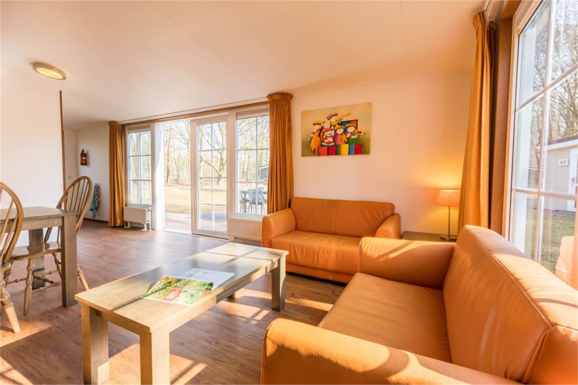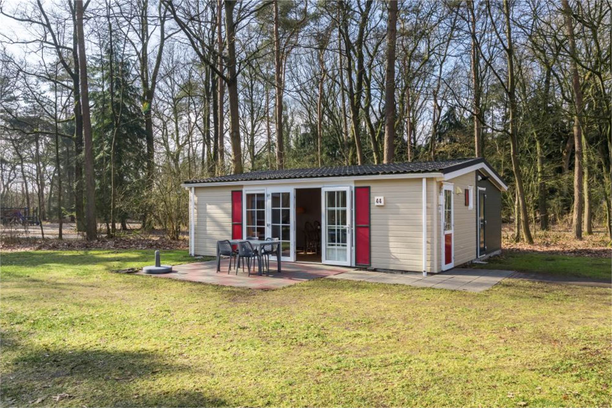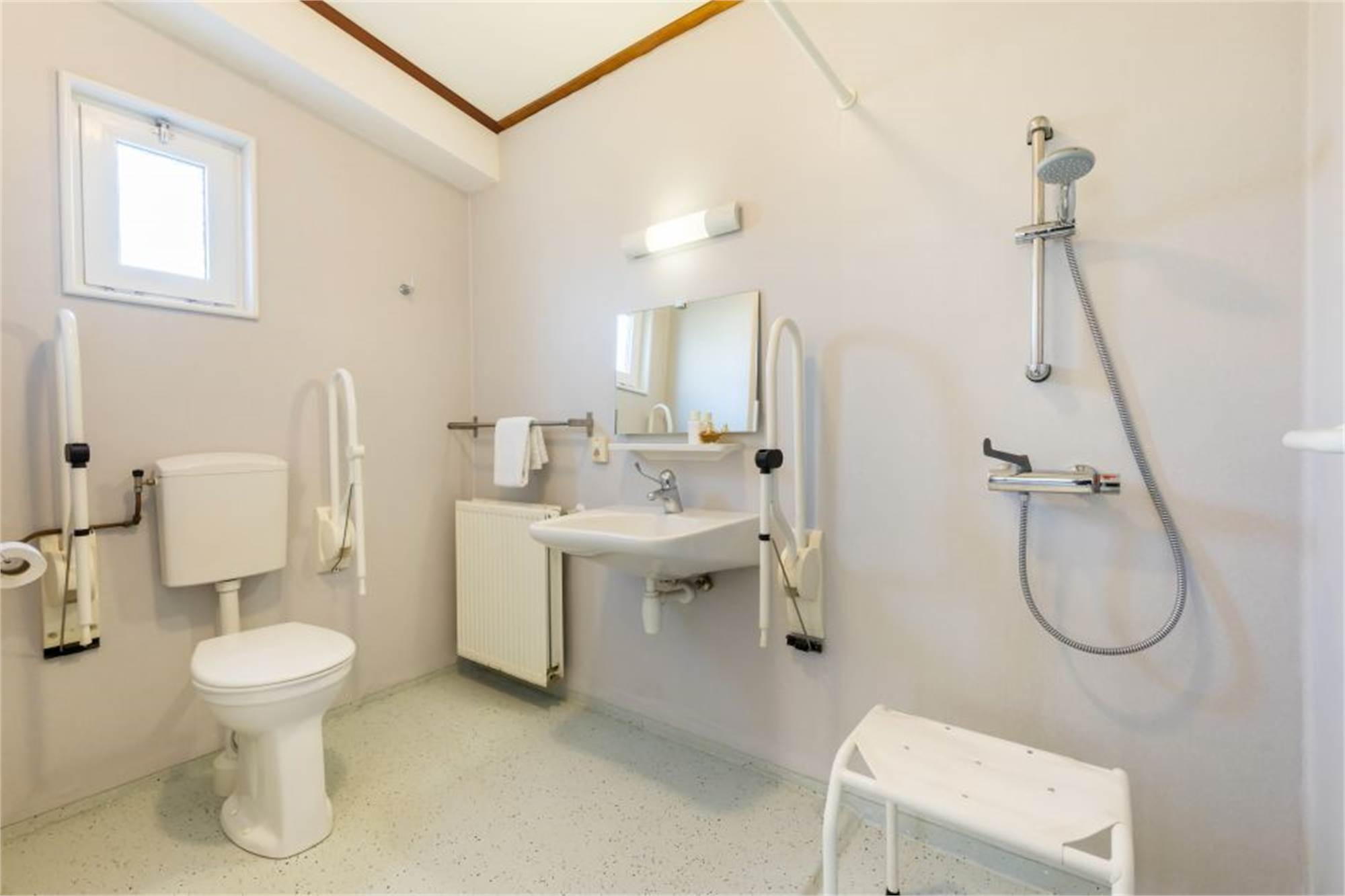 This detached, threshold-free chalet is suitable for 4 people and adapted for disabled visitors. The living room has a separate dining area and in the kitchen you will find a combination microwave and coffee machine among other things. In addition, there are 2 bedrooms each with 2 single box spring beds and there is an adapted bathroom with shower and toilet. The chalet is also equipped with a furnished terrace and free Wi-Fi is available.