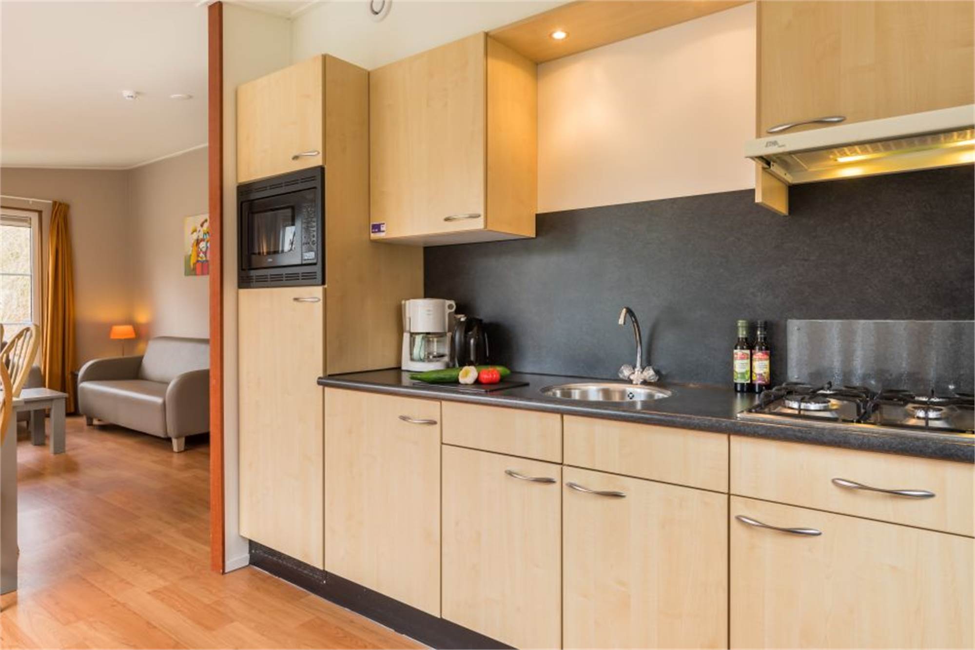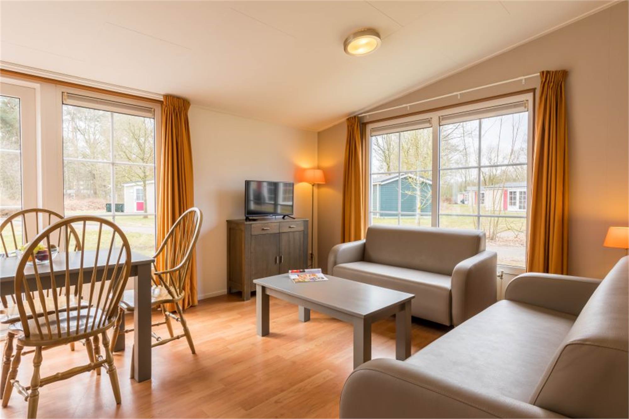 This detached chalet is suitable for 6 people. The living room has a separate dining area and in the kitchen you will find a combination microwav and a filter coffee machine among other things. In addition, there are 3 bedrooms each with 2 single beds and a bathroom with shower and a separate toilet. The chalet is also equipped with a furnished terrace and free Wi-Fi is available.