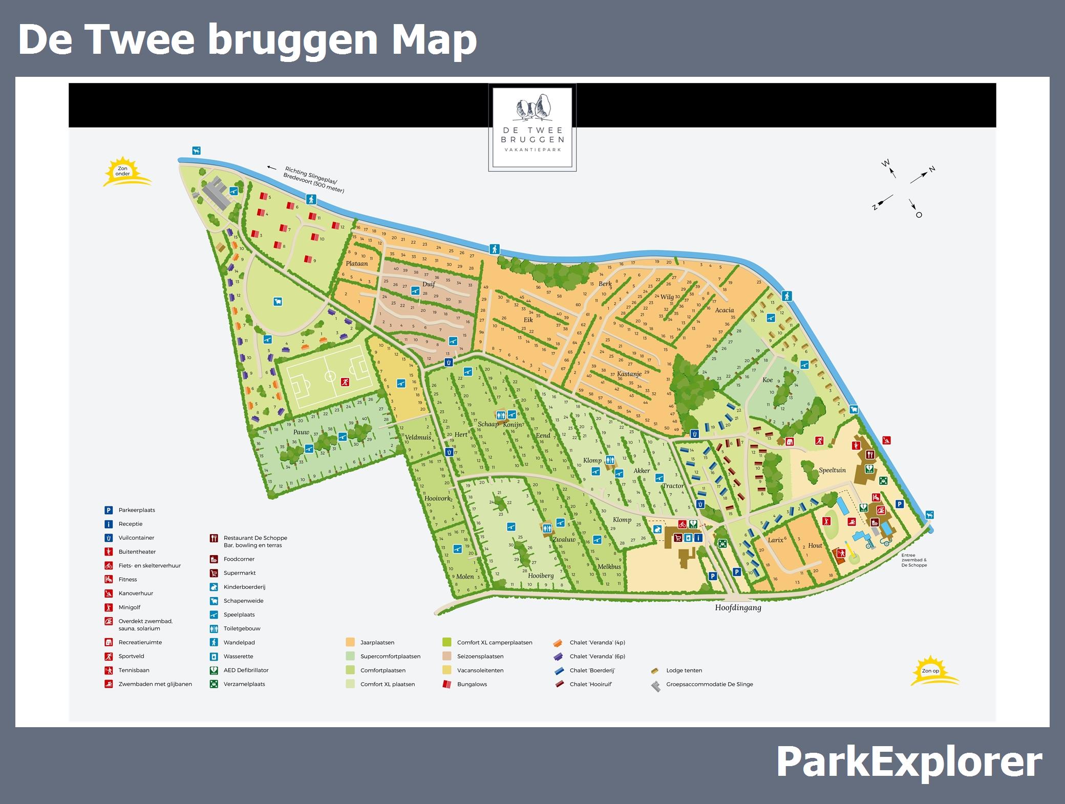Up-to-date and comprehensive village map of De Twee bruggen with all accommodations and facilities, also available as PDF.