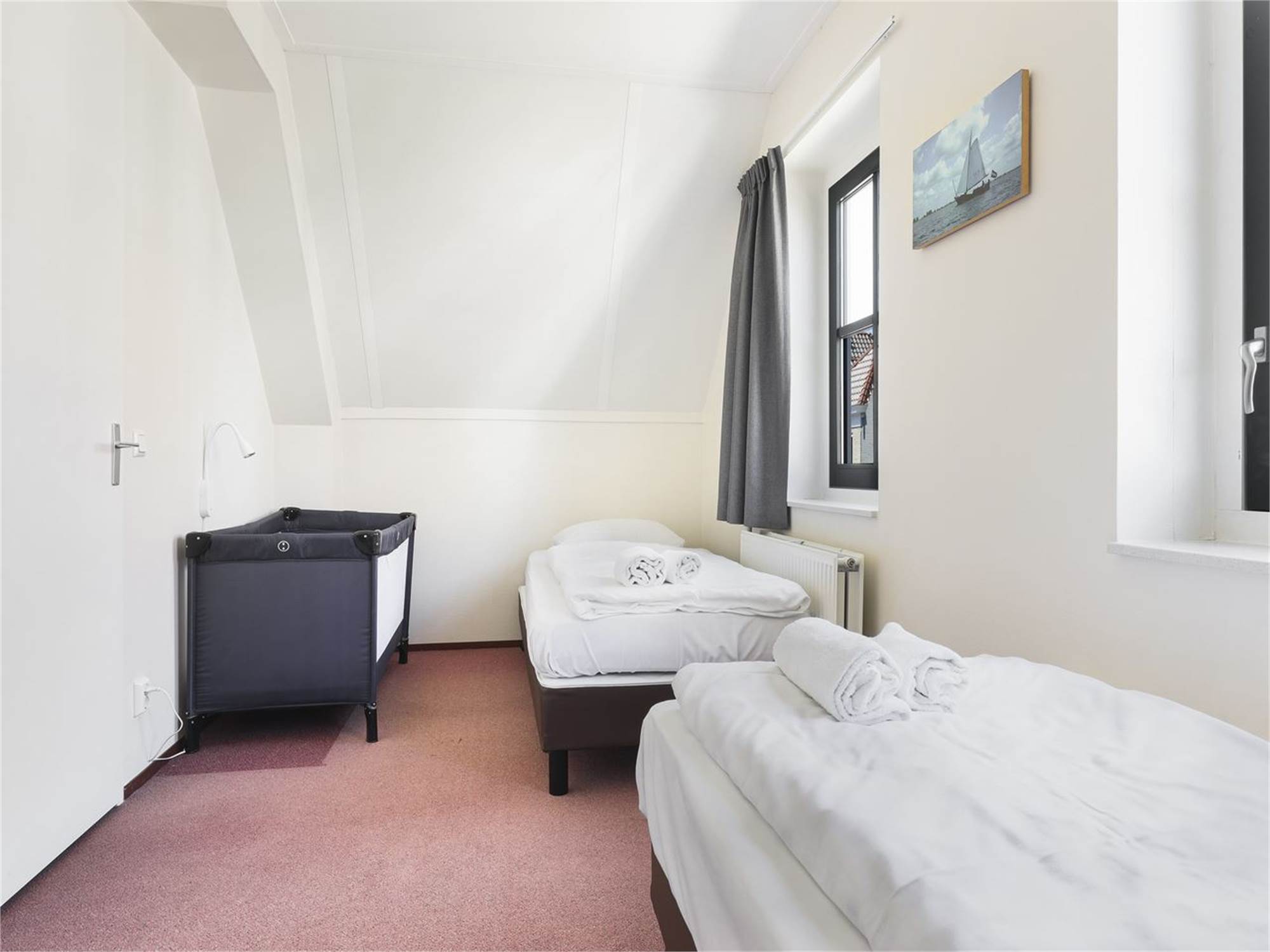Bedroom with two single box spring beds on the first floor