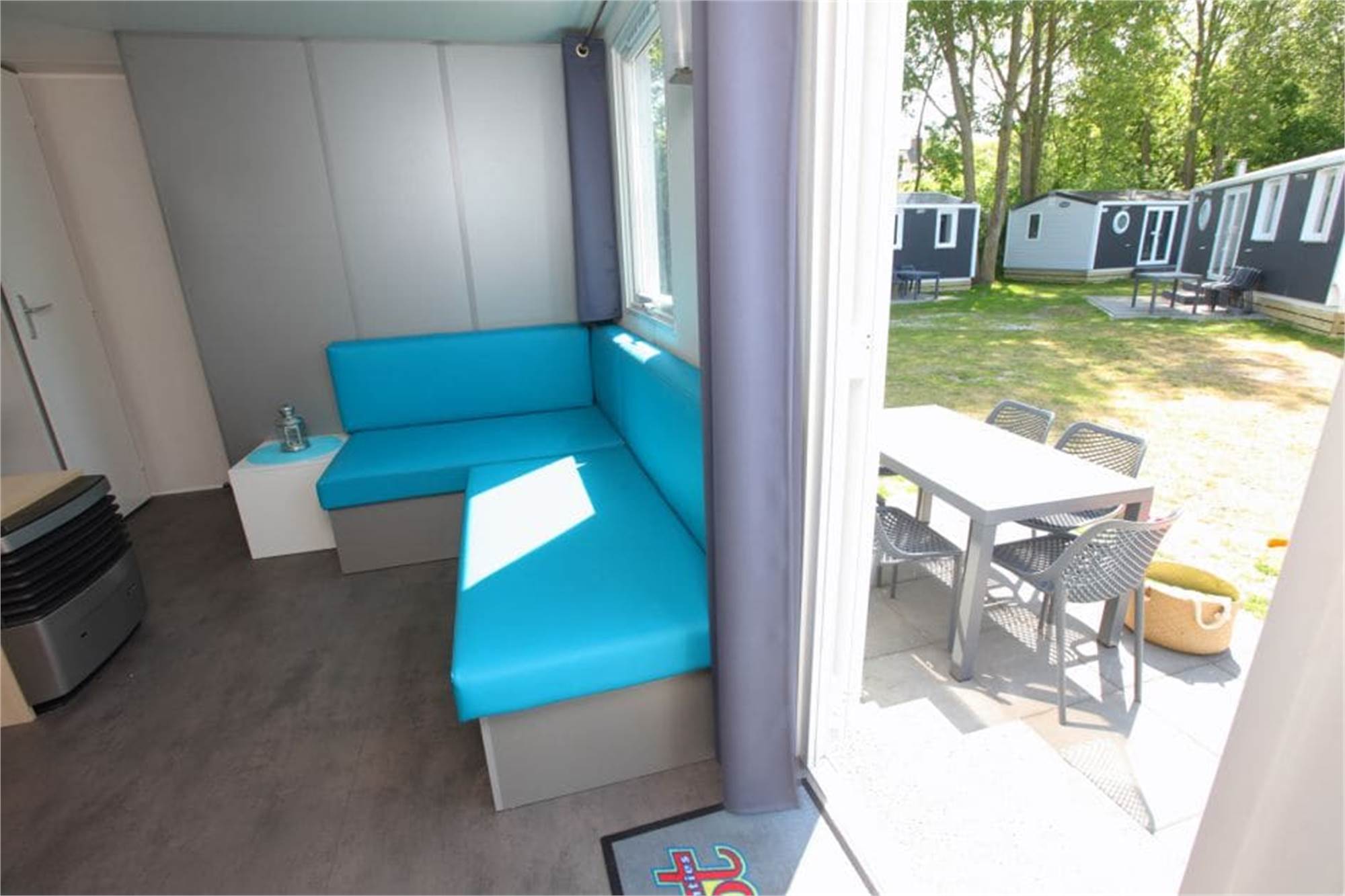 The small, but with practical and modern furnishings Chalet 6A is a chalet, suitable for 6 persons. The seating corner has a smart TV and in the kitchen you will find a coffee pad machine and microwave, among others. The chalet has 3 bedrooms, with 2 single beds each. The bathroom is fitted with a shower and there is a separate toilet. There is also a terrace with garden furniture. You can make free use of Wi-Fi.
