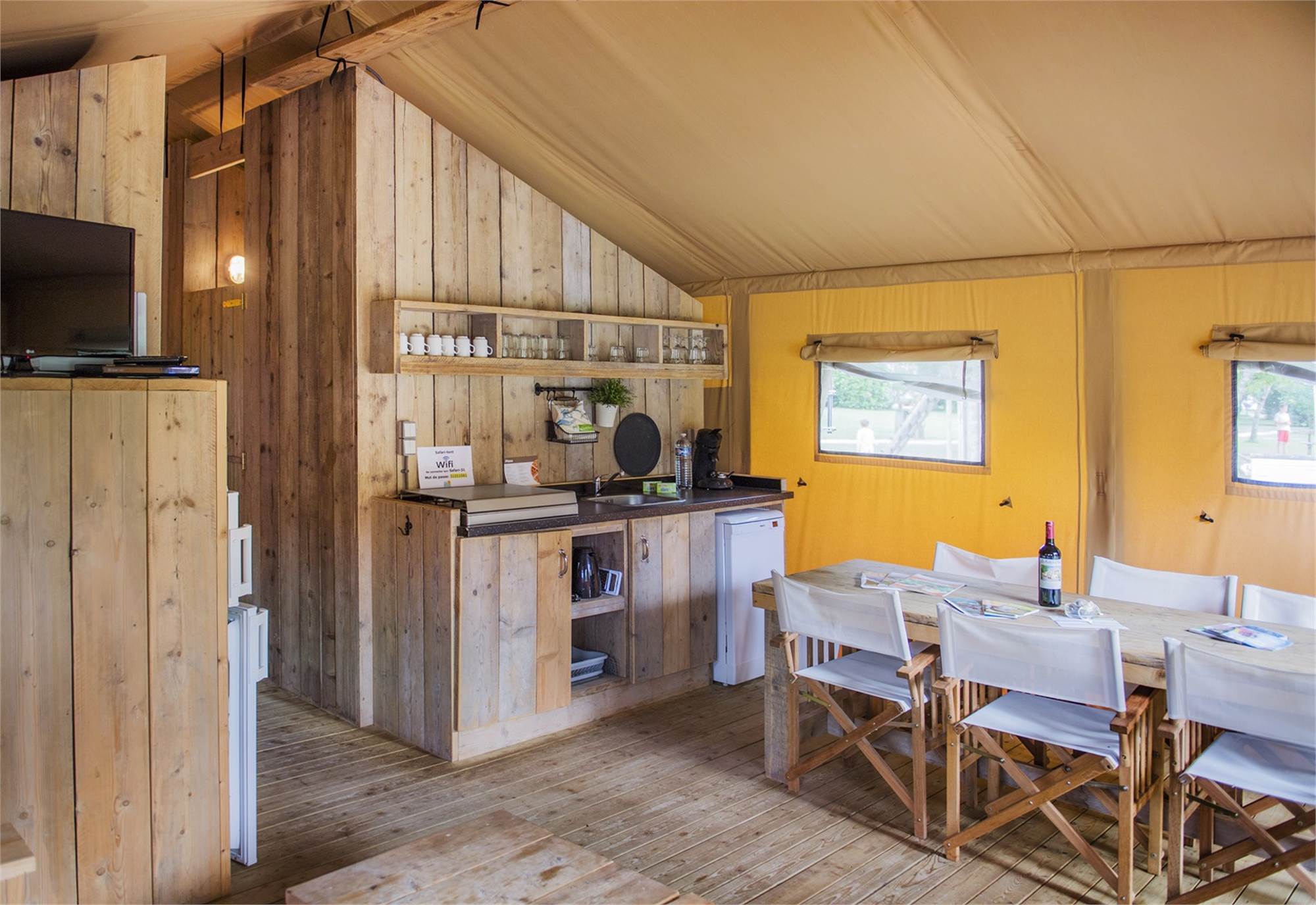 Safari tent lodge Laurier Safari tent belle vue • Accommodation type: Safari tent lodge Laurier • Comfort level: Comfort • Capacity: 6 persons • Number of bedrooms: 2 • Number of bathrooms: 1 Read more › Map of Safari tent lodge Laurier Safari tent belle vue Read more › Photos of Safari tent lodge Laurier Safari tent belle vue Simular accommodations at RCN Le Moulin de la Pique Safarizelt belle vue RCN Le Moulin de la Pique has other accommodation types with the same comfort level Chalet Childrens mobile home Cottage RCN Le Moulin de la Pique has the following alternative accommodations 6 persons 6FS 6LMV+Mobile home Beynac 6LMV+3Mobile home biron 6LMVA+3XL 6LMVA+3XXLMobile home castelnaud Mobile home beynacChildrens mobile home Mobile home Beynac - 6LMV+Childrens mobile home Mobile home bironChildrens mobile home Mobile home Biron - 6LMV+3Childrens mobile home Mobile home les milandesChildrens mobile home Mobile home les Milandes - 6LMVA+3XLChildrens mobile home Mobilheim beynac Mobilheim Beynac - 6LMV+ Mobilheim biron Mobilheim Biron - 6LMV+3 Mobilheim castelnaud Mobilheim Castelnaud - 6LMVA+3XXL Mobilheim les milandes Mobilheim les Milandes - 6LMVA+3XL Safari lodge belle vueChalet Safari lodge Belle Vue - 6FSChalet Safarizelt belle vue