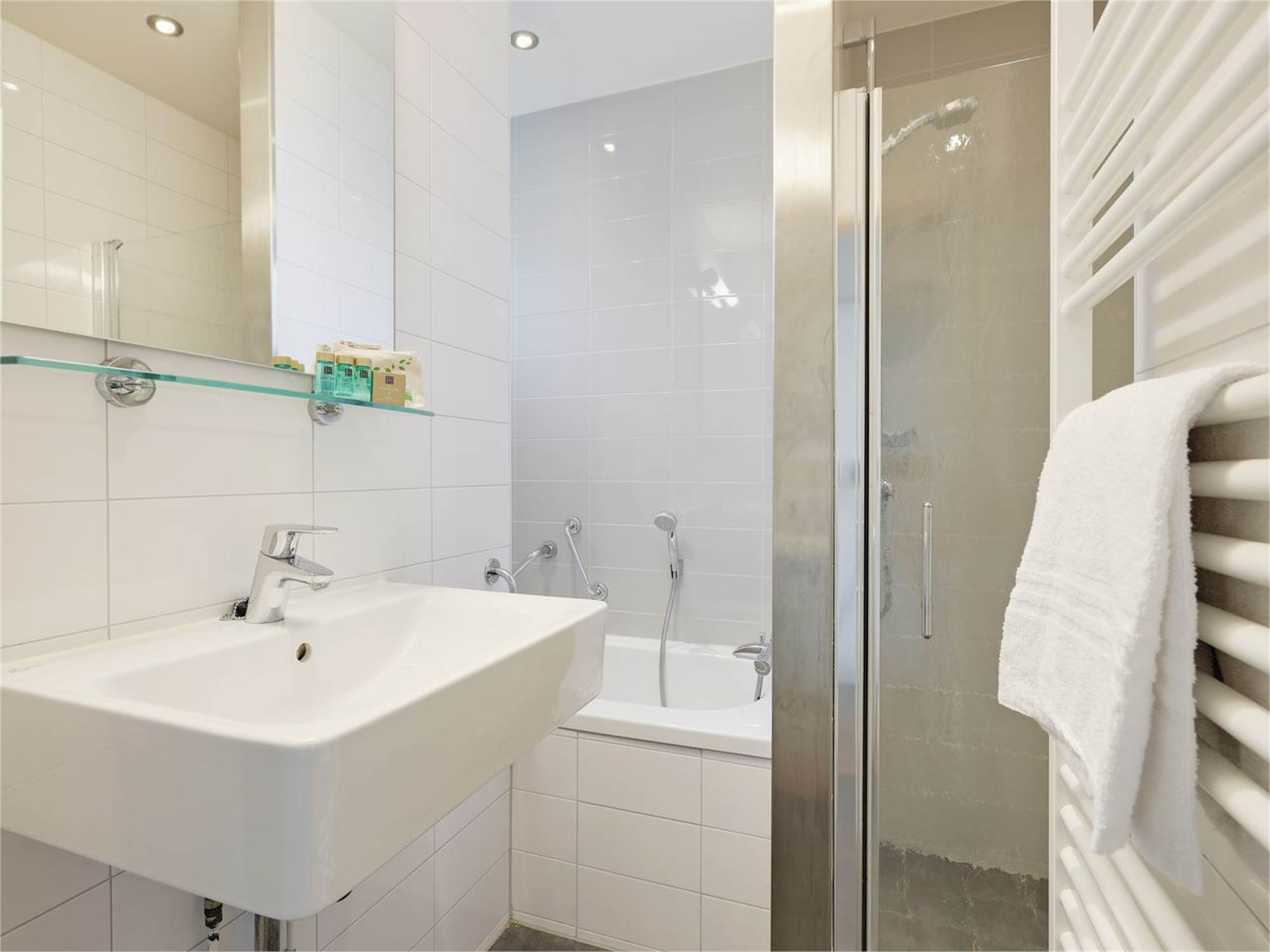 Bathroom with shower cubicle and washbasin